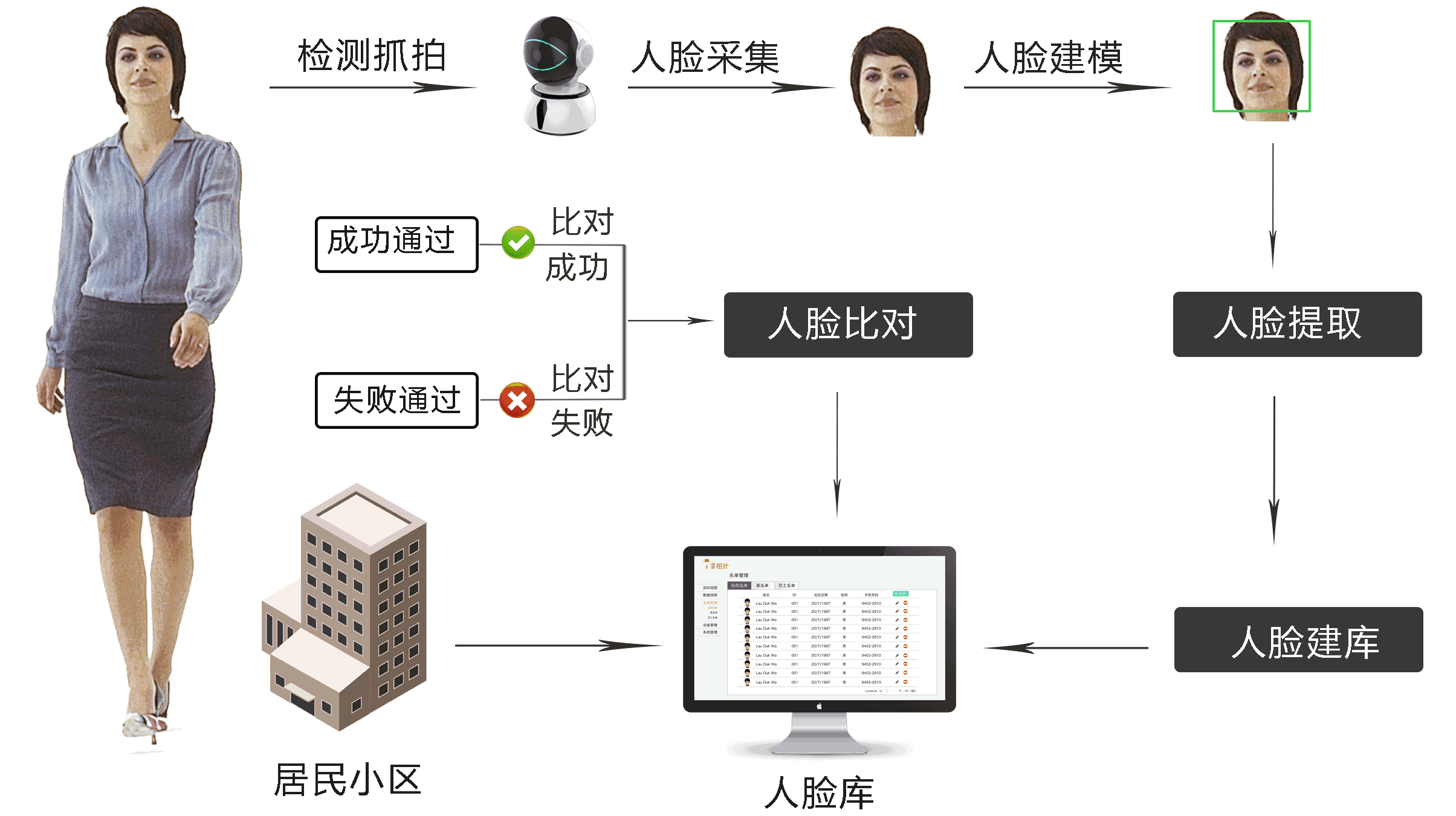 1.將住戶人臉圖像、身份信息導(dǎo)入系統(tǒng)人臉庫;