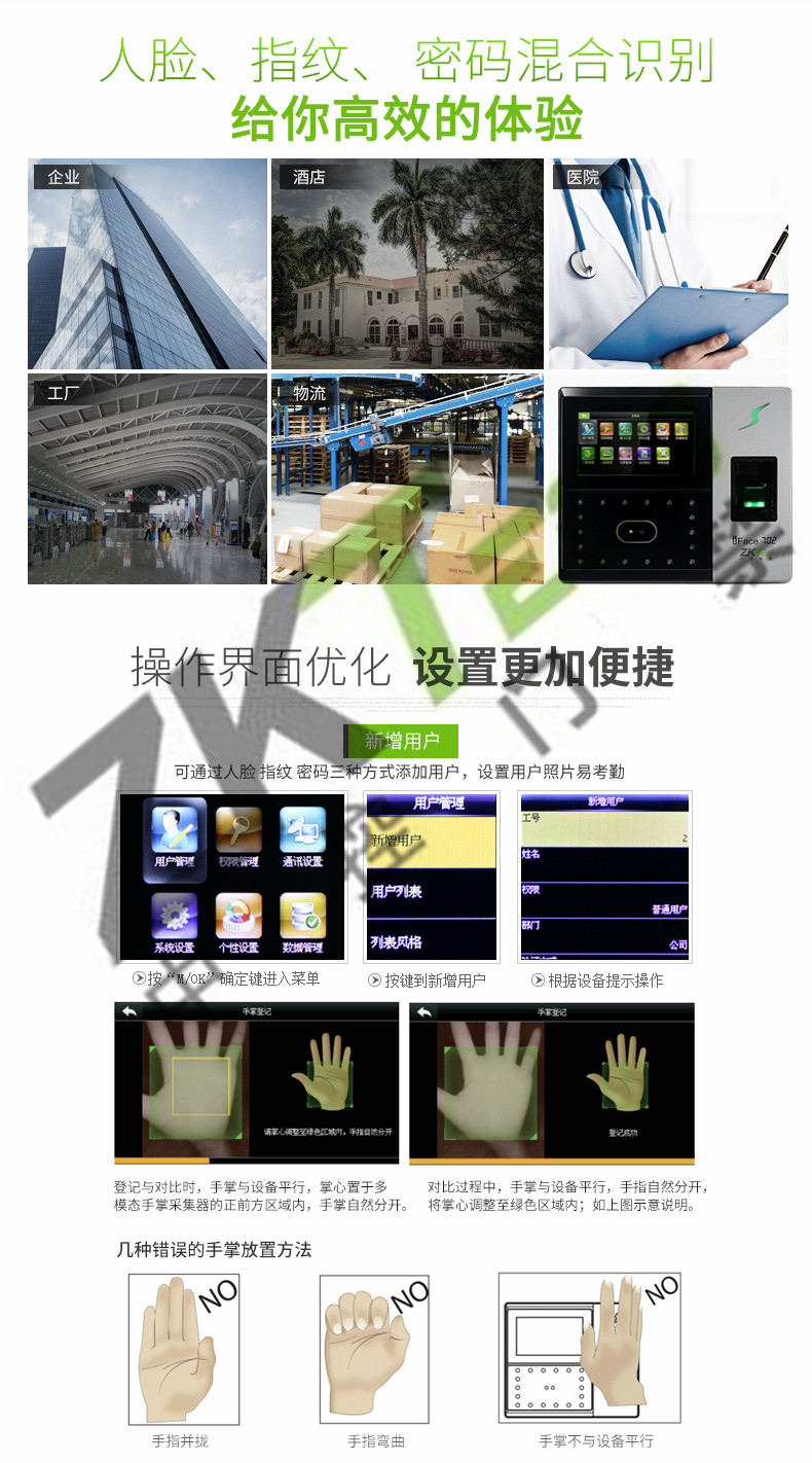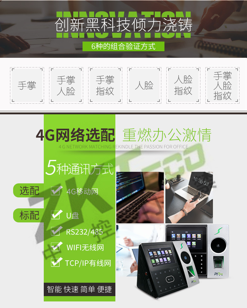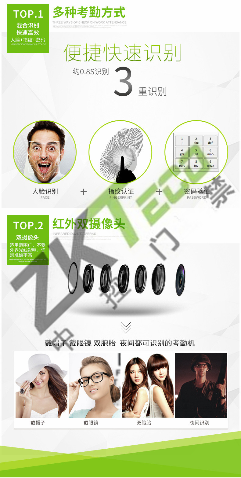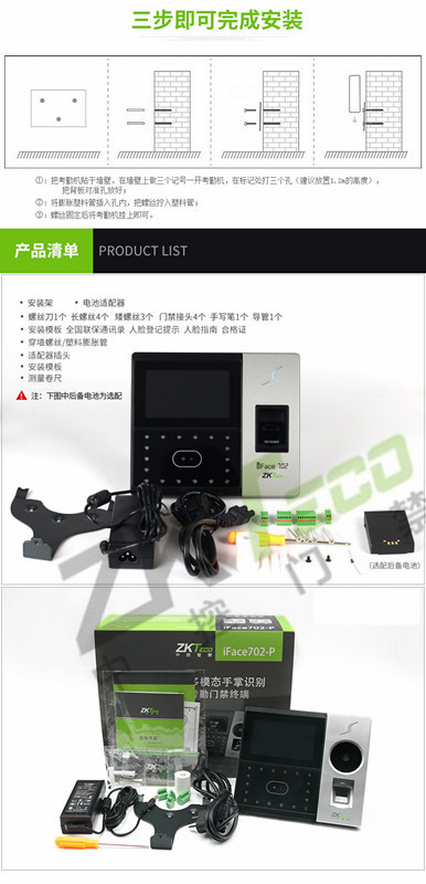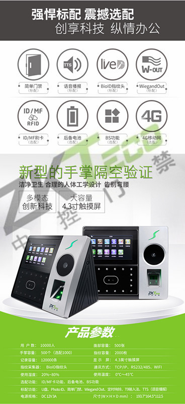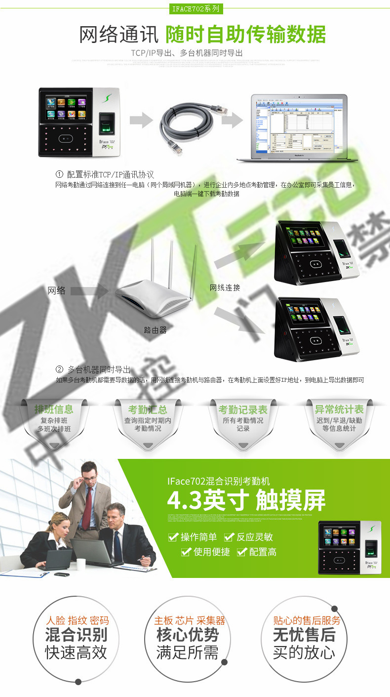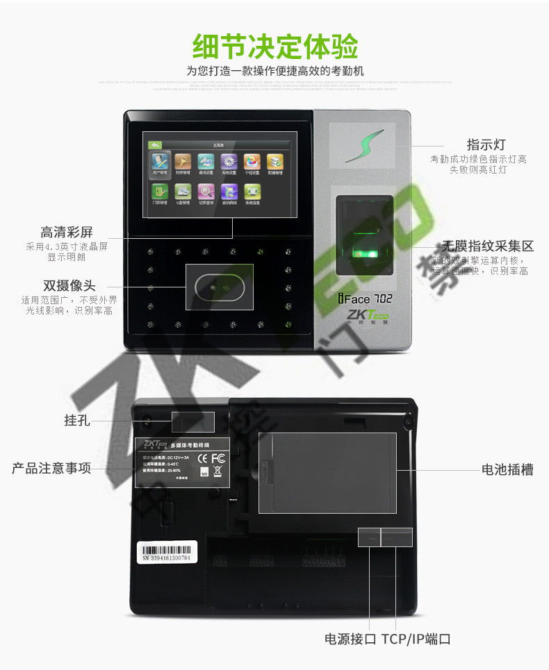 中控面部考勤機iface702P 人臉指紋識別門禁