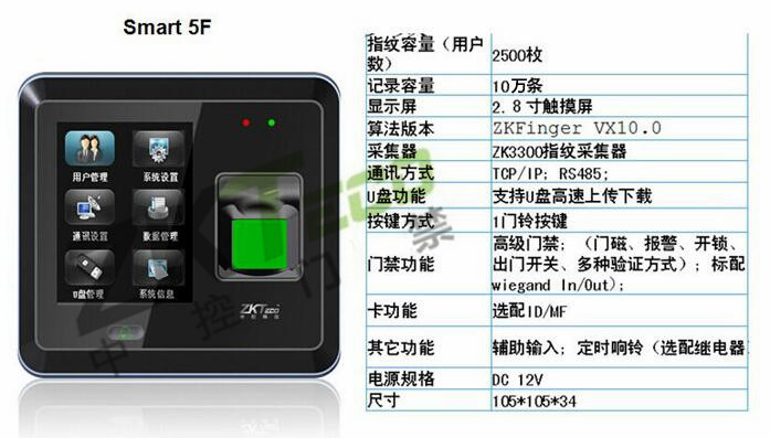 ZK-5f打卡機 辦公室指紋門禁機