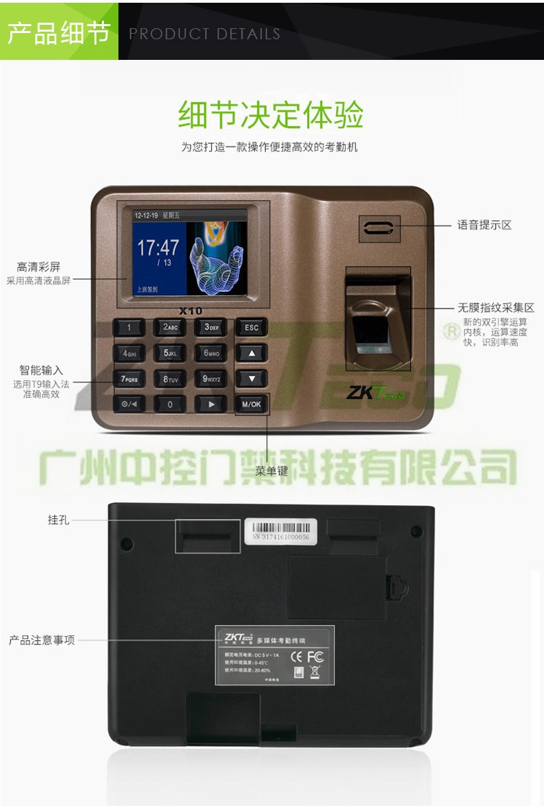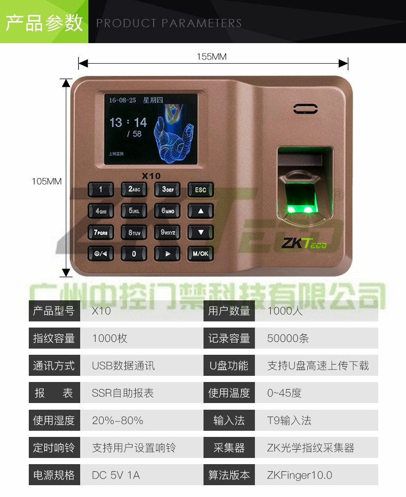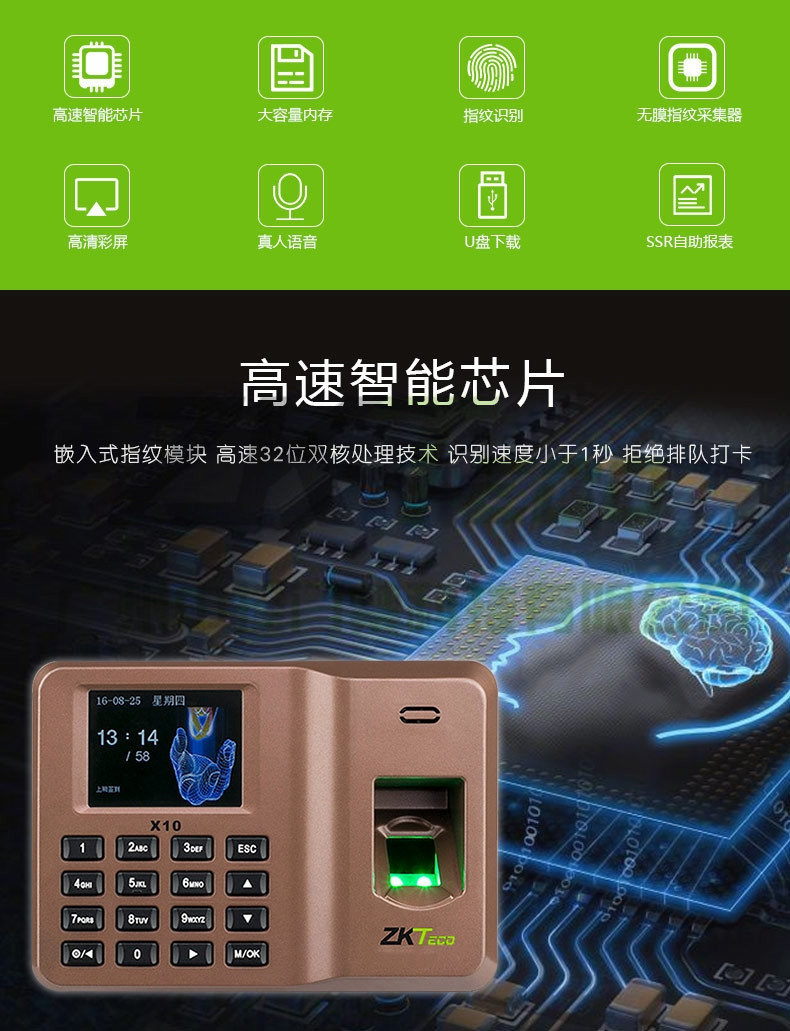 智能指紋密碼打卡門禁X10