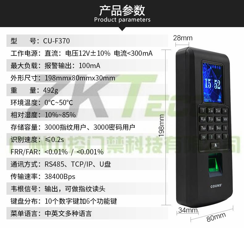 指紋考勤門禁機(jī)高優(yōu)CU-370