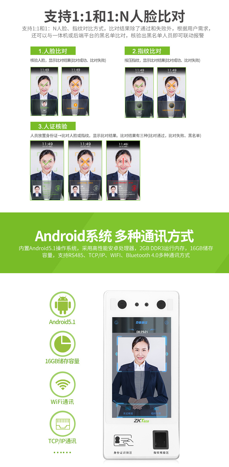 中控人證核驗(yàn)門(mén)禁一體機(jī)ID700