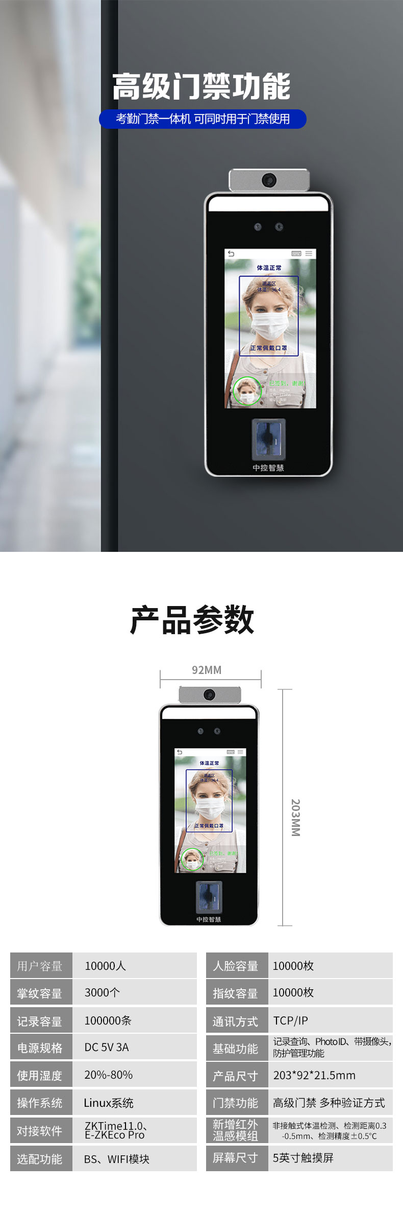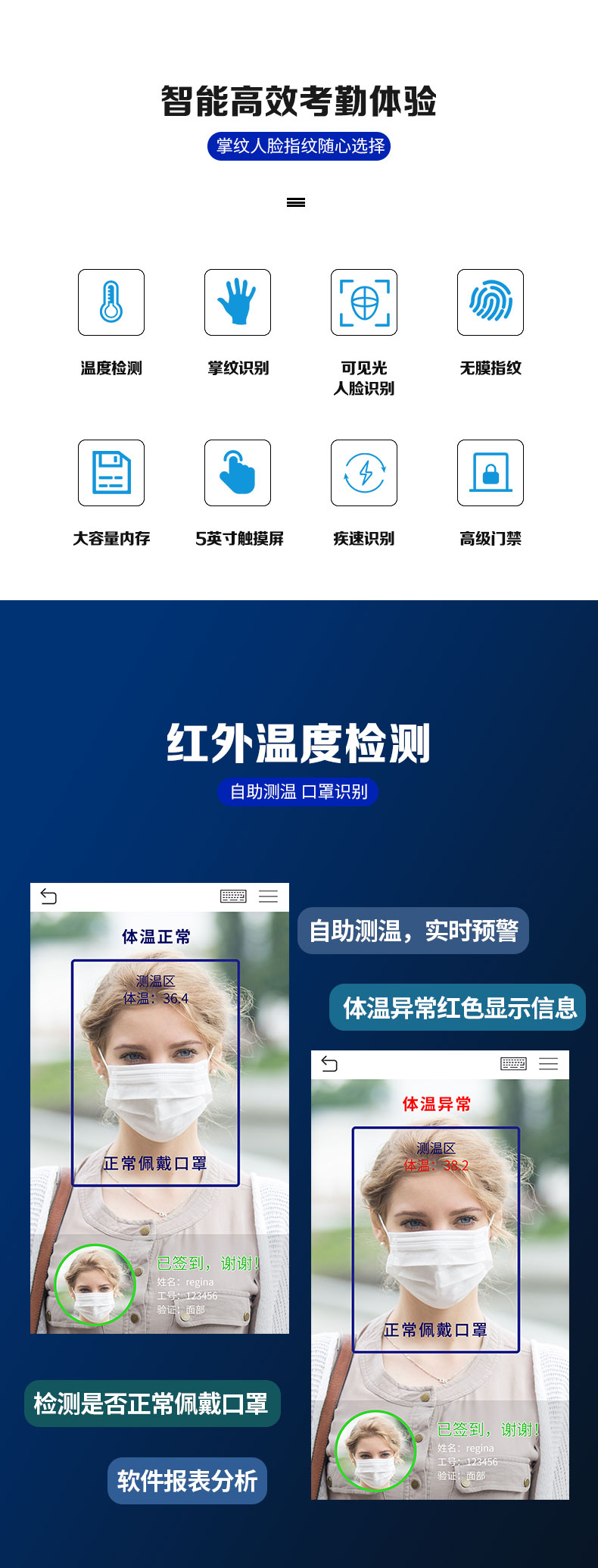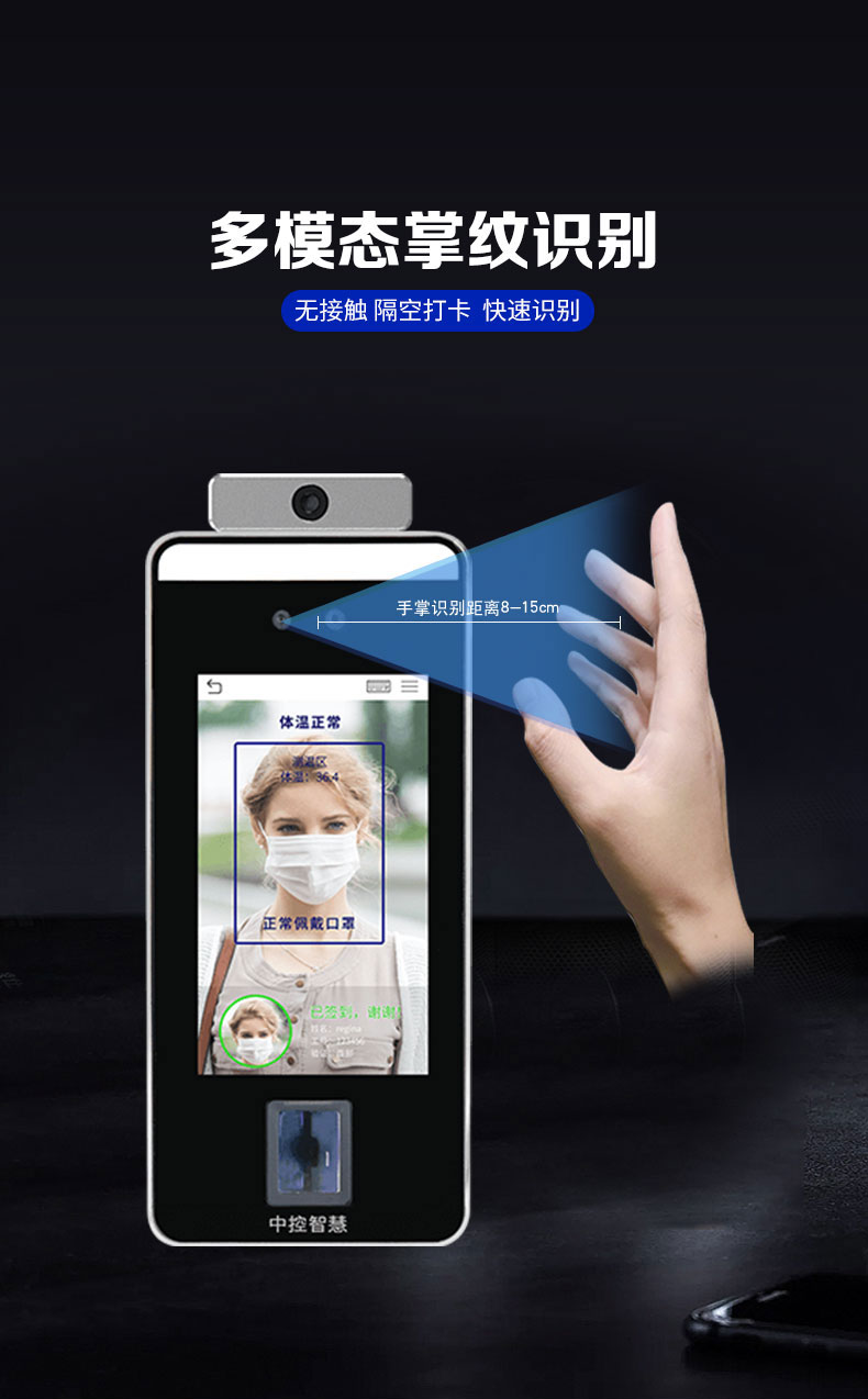 非接觸式掌紋門禁xface600plus是一款測溫門禁智能終端,搭載測溫模塊;選配WiFi導數(shù)據(jù) 非接觸式掌紋門禁xface600plus系列基于熵基科技深度學習算法,通過對人的掌紋或臉部、指紋特征信息實現(xiàn)快速身份識別,讓人們享受到更加安全、便捷、高效的通行體驗,推出的非接觸式混合生物識別終端。xFace600-Plus還搭載高性能紅外體溫檢測模塊,人員通行時即時檢測人表體溫并報警,提供更為安全、便捷、高效的通行體驗。另外,xFace600-Plus廣泛適用于社區(qū)、校園、醫(yī)院、景區(qū)、酒店、商場、寫字樓、公共服務場所等場景。
